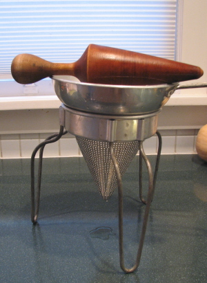 Susan’s mom’s chinois on its stand with pestle